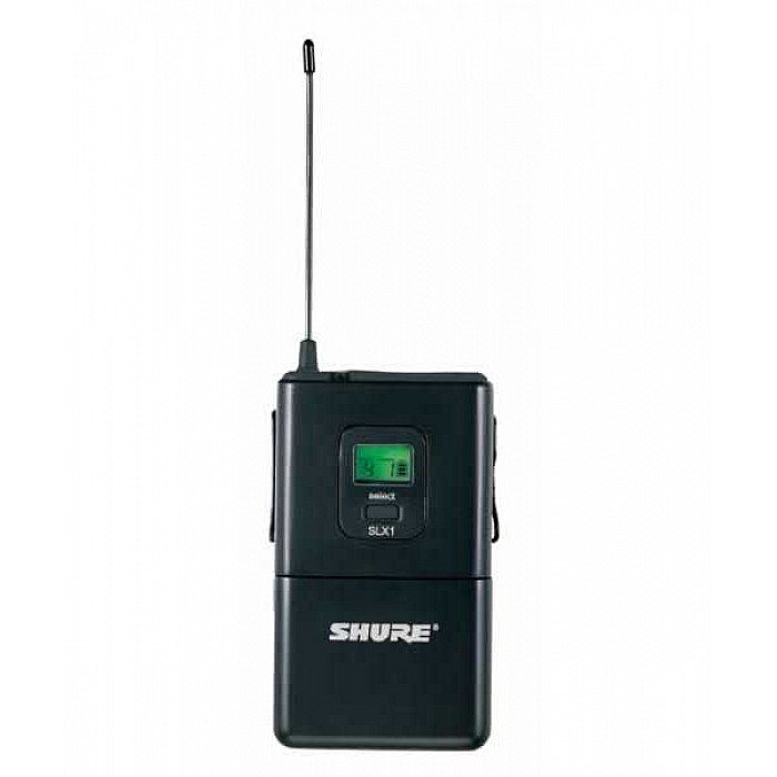 The SLX1 bodypack transmitter is designed to hold up to the most adverse conditions. Whether used with headworn, Lavalier, instrument microphones, or with guitars or basses, the Shure SLX1 is the definition of reliability. SLX Wireless Systems feature Shure's patented Audio Reference Companding for crystal-clear sound beyond the limits of conventional wireless technology.