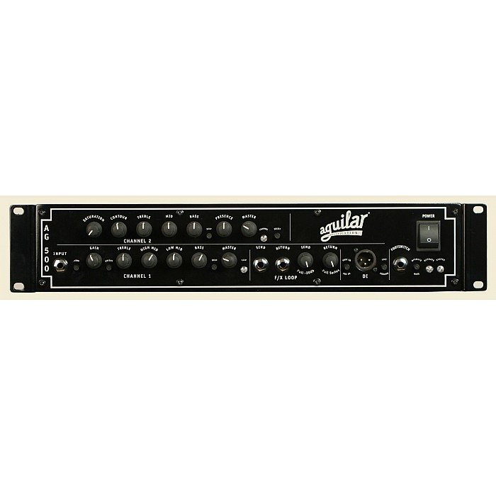 The Aguilar AG 500 Dual Channel Bass Head combines dual preamps and Class A gain stages and a lightweight 500-watt MOSFET Class D power section. Single input, with 2-channel operation. Channel one provides clean, full tone with the flexibility of a 4-band active EQ section. Channel 2 features a passive EQ section and a versatile overdrive, adjustable for everything from vintage tube grit to full-on dirt.