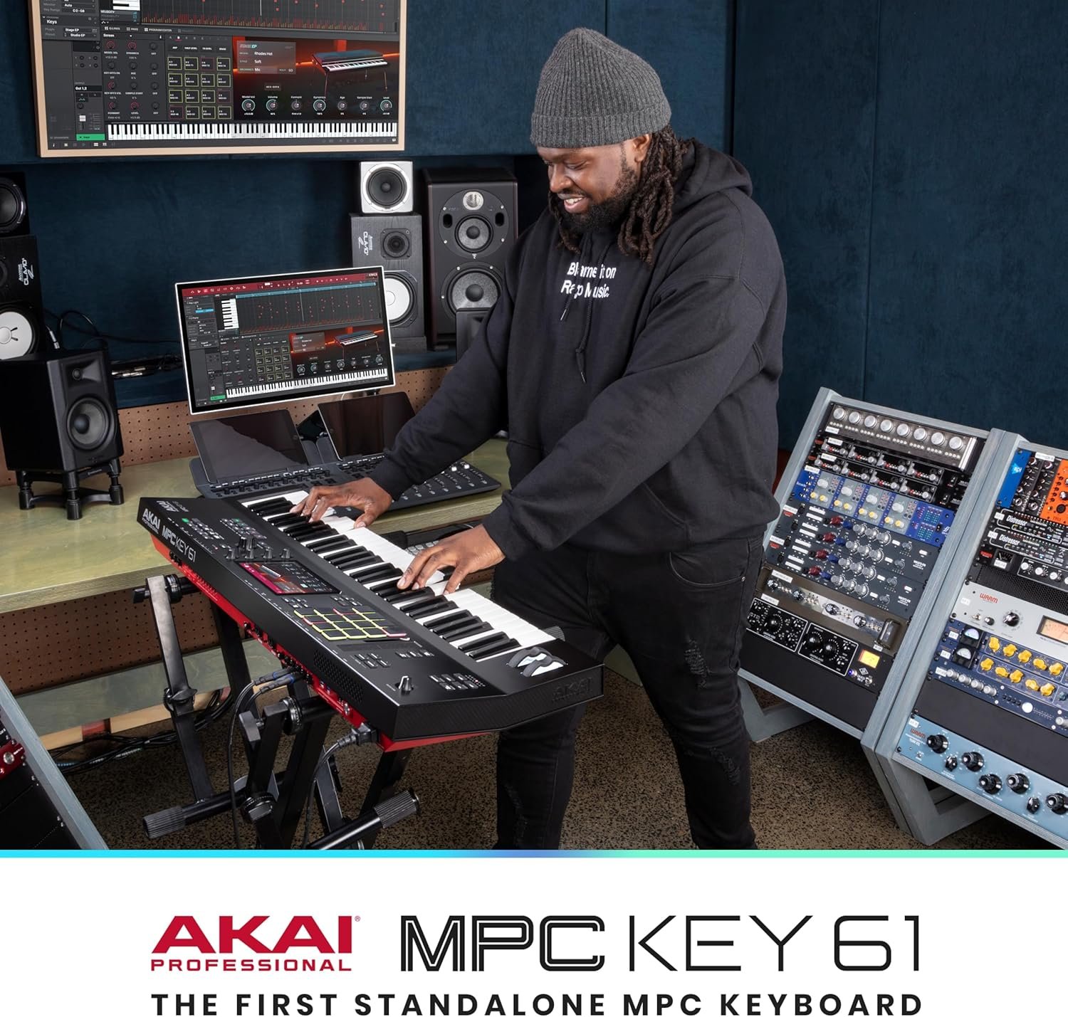 Akai Professional has combined its legendary MPC platform with a keyboard workstation for the first time! The new MPC Key 61 is one of the most feature-packed standalone production tools ever produced. Akai's MPC changed music forever in the late '80s once pop and hip-hop luminaries got their hands on it, and this MPC Key 61 features refined versions of MPC tools with additional pressure-sensitive velocity pads, pad memory, 63 function buttons, and much more. Use the MPC Key 61 as a standalone workstation; a controller/input for DAWs, MIDI devices, or hardware synths; as a sampler; and almost anything else. Moreover, MPC3 software provides integration with Native Instruments software instruments and expansions. The onboard LED display features a spacious 8.5-inch x 5.5-inch touchscreen, and the MPC’s 16GB flash storage comes loaded with 10GB of preinstalled content ready for use right out of the box. Plus, it’s easy to expand the MPC’s storage thanks to a Type-A slots for USB drives and a SD slot