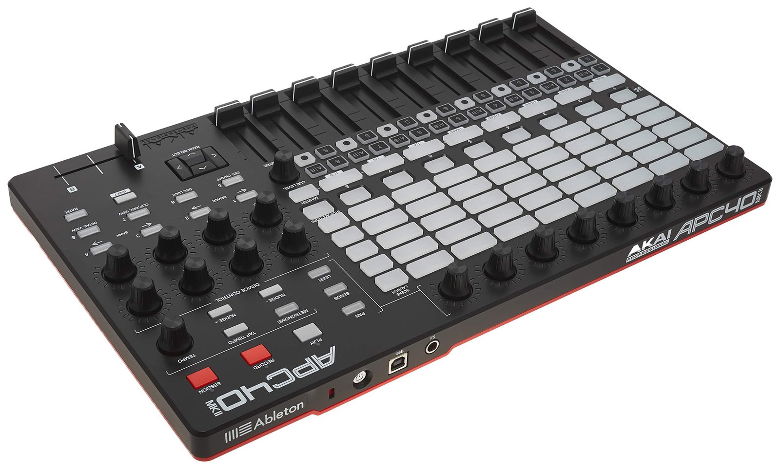 Ableton chose Akai Professional as a partner because Akai Professional is the market leader for professional and robust manufactured controllers. From the legendary MPC Series which completely changed the world of music production to the unique MPD and MPK Controllers, all equipment from Akai Professional is prefered by musicians, DJs and producers when it comes to the right feeling. The robust chassis of the APC40 is made of metal and rubber. The solid controllers and faders are ideal for exact operations. The APC40 even has a professional, changeable crossfader.