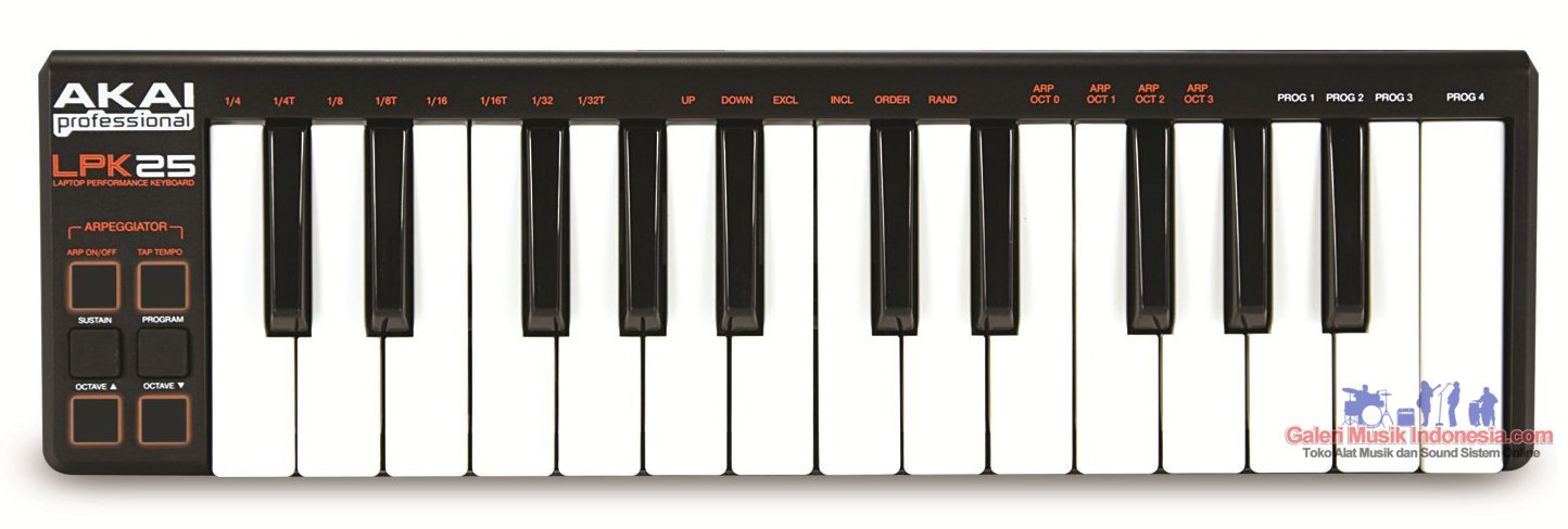 The Akai LPDK25 offers plug-and-play with Mac and PC computers and requires no software driver installation or wall power for operation. The LPK25 Laptop Performance Keyboard has 4 memory banks for programming and recalling settings appropriate to the software programs you use.