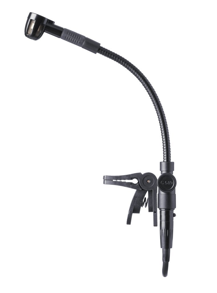 The C 519 clips onto the bell of a trumpet, saxophone, trombone, tuba, or any other wind instrument (e.g. didgeridoo). Room to move for the wind section at last! Its tight cardioid polar pattern makes the C 519 an ideal tool for use near monitor wedges, and its flat frequency response delivers a natural, powerful, and clear sound.