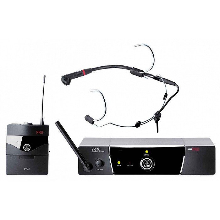 The AKG WMS 40 Pro Sports Flexx Wireless Headset System includes the SR 40 Flexx Receiver, PT 40 Flexx Transmitter, and the C 444 L Head-Worn Microphone. The WMS 40 Pro Sports features selectable frequencies. The diversity receiver ensures the best possible reception at any time, an ideal feature for the gym where users tend to move about quickly.