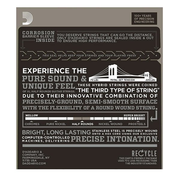 | Gauges: 10-13-17-26-36-46. D'Addario EHR310 electric guitar strings feature a hex steel coreand color-coded ball ends. D'Addario is the world's largest manufacturer of strings for musical instruments. Many top guitarists won't play any other brand. Regardless of your playing style, D'Addario has a set of strings that's right for your electric guitar. |