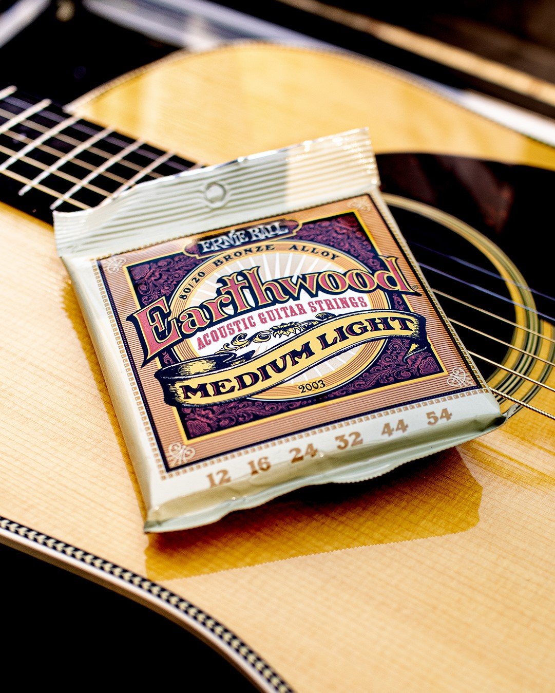 Ernie Ball strings have been a top choice for players of all types since the early 1960s, when guitarists came into Ernie Ball's music store, customizing their string gauges to make their axes easier to play. After fruitless attempts to interest major guitar manufacturers in a lighter set of strings, Ernie Ball decided to start making his own. From shredders to acoustic virtuosos, Sweetwater guitarists love Ernie Ball strings for their great tone, reliable performance, and long life. You can't go wrong when you string up with Ernie Ball strings! Ernie's Medium Light Earthwood 80/20 Bronze strings are made from 80% copper, 20% zinc wire wrapped around hex-shaped tin plated steel core wire. They provide a crisp, ringing sound with pleasing overtones.