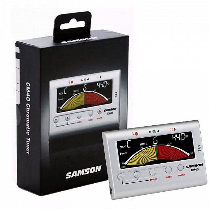 Samson CM40 brings precision tuning and metronome capabilities together in our CM40 Chromatic Tuner/Metronome. Its compact, easy-to-use design makes tuning guitars, basses, stringed, woodwind or brass instruments easier than ever.