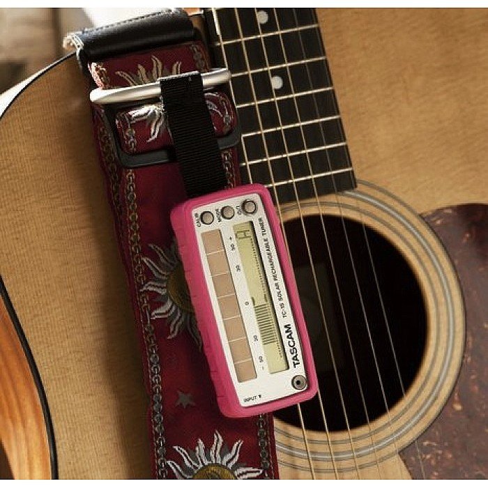 The TC-1S charges its battery via a USB input or from a built-in bank of solar cells on the front panel allowing six hours of continuous use or an amazing seven years of standby charge in darkness. It's wrapped in a shock-proof silicone cover that's available in multiple colors and keeps the Solar Tuner protected.