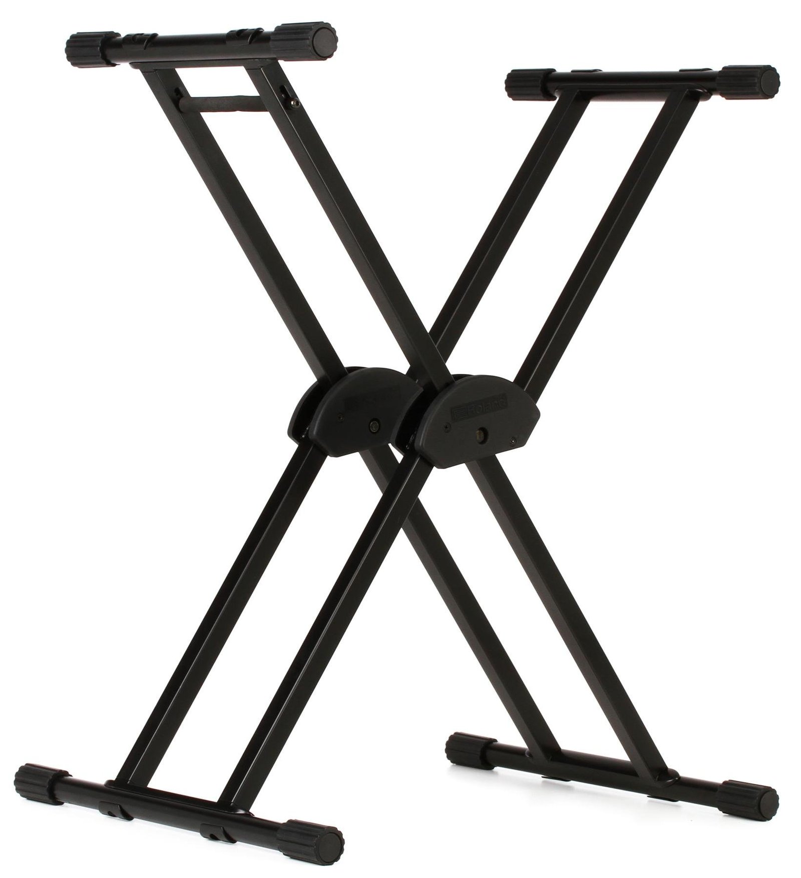 The KS-20X from Roland is a classic, no-nonsense offset-X stand that is ideal for all types of keyboards. With double bracing for increased rigidity, the KS-20X features a spring-loaded lever with locking clutch for easy height adjustment. And when you have to confront uneven surfaces, the KS-20X has adjustable rubber sleeves.