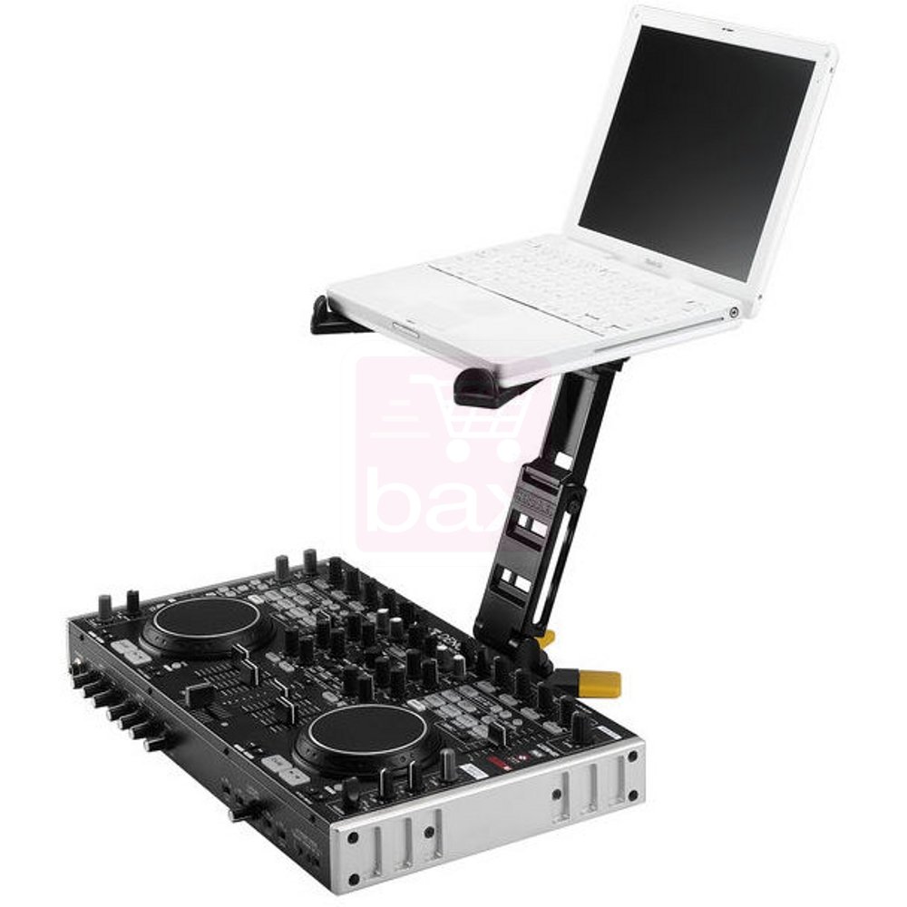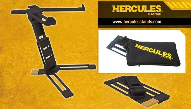 The HERCULES Laptop Stand DG400BB features a one-piece folding design, has multiple height and angle adjustments, and includes a carry bag.