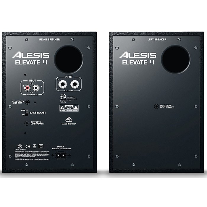 Alesis Elevate 4 studio speakers deliver full-range sound with impressive clarity and warmth to all your mixes, masters and multimedia content. Elevate 4 speakers bring out every detail of the sound, unencumbered and crystal clear. Unlike conventional speakers that use vibration-prone plastic cabinets, the Elevate 4’s dense wood cabinets suppress clarity-robbing resonances, resulting in clearer sound and stronger bass.