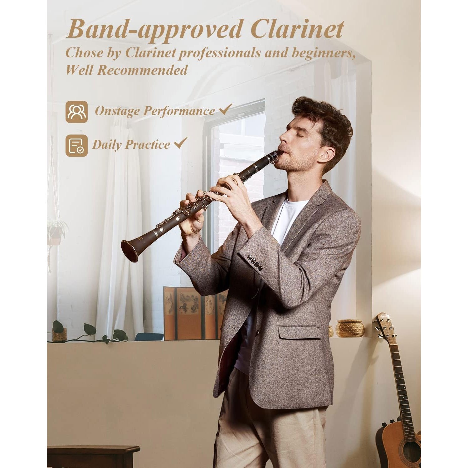 This clarinet rated Eastar from any point of view, it is spotless: 1 From musical pitch, timbre, to resonance, thanks to Eastar's patented design of clarinet's body, these requirements are fully met. 2: beautiful silver-plated keys, noble and exquisite, provide a very warm tone to this clarinet. 3: Eastar's mouthpiece suit, professional 4C practice mouthpiece with cortical ligature and our excellent wind band clarinet reeds, this mouthpiece suit can give musician the most pure music enjoyment. The Package Contains -- ECL-400 Commander WIND BAND Clarinet, Accessories : Advanced Hard Case,Cortical Ligature, Metal Ligature, Eastar 4C Special Practice Mouthpiece, Mouthpiece Protective Cap , Thumb Sheathing, 2 x Mouthpieces Connector ,Cloth, White Gloves, Joint Grease, Clarinet Swabs, Eastar Wind Band Clarinet Set(3-pics), Hardness Colorful Box.