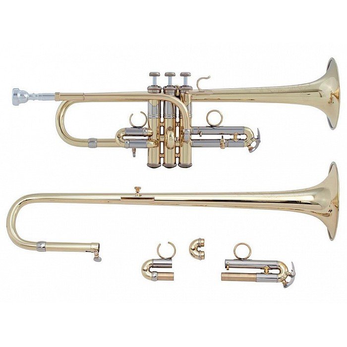 Key: Eb/D Bore: .450-inch Leadpipe: Standard Leadpipe Material: Yellow Brass Bell: Two 4-1/2-inch One-Piece Hand-Hammered Tunable Bells with Flat Rim Bell Material: Yellow Brass Valves: Monel Pistons 1st Valve Slide Adjustment: Split Ring 3rd Valve Slide Adjustment: Fixed Ring Features: One-Piece Hand-Hammered Bell with Flat Rim; Special Acoustic Bell Treatment; Enhanced Radius Ferrules; Two Sets of Valve Guides (Brass and Plastic); Two Separate Sets of Slides for D and Eb; Deluxe Bell Engraving Case: C190DE Deluxe Case Mouthpiece: NO Finish: Lacquer, Silver
