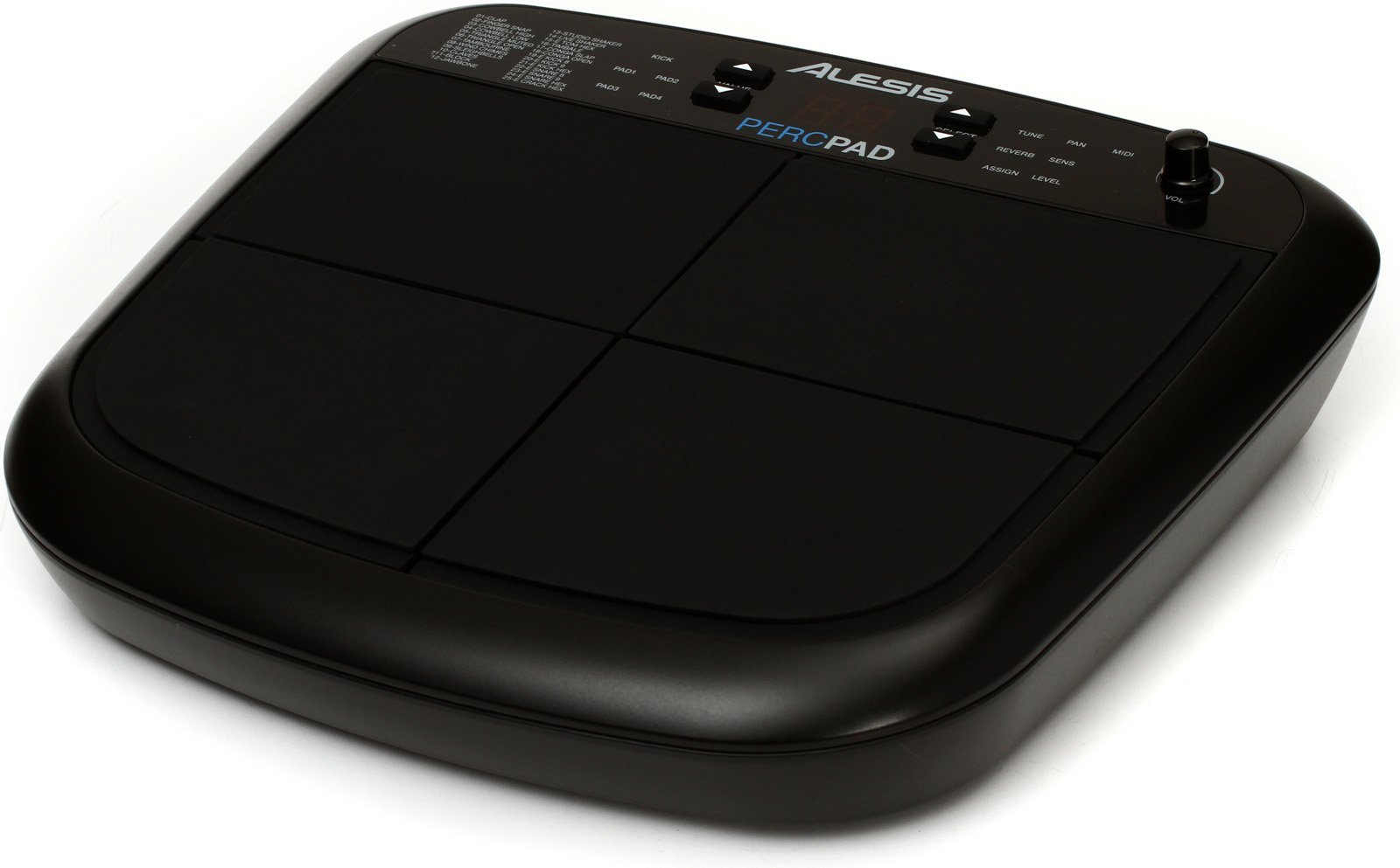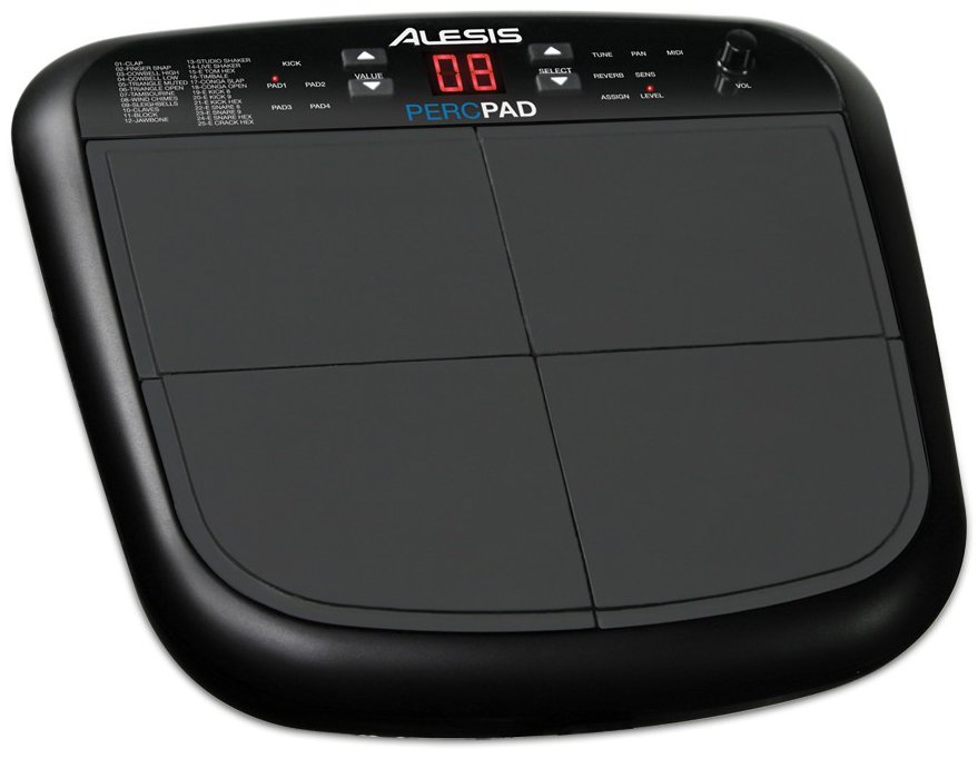The Alesis PercPad enables you to add four drum pads and an optional kick trigger to your acoustic or electronic kit or percussion setup. It's compact, easy to fit into tight setups, fits on a snare stand, is easy to use, and it contains 25 sounds that are perfect for accessorizing standard drum sets.