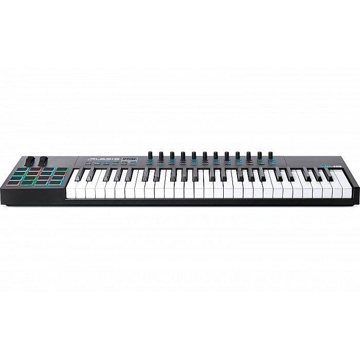The Alesis VI49 is an advanced USB/MIDI keyboard MIDI controller that lets you take command of your music software with a series of pads, knobs, and buttons. With 49 velocity-sensitive semi-weighted keys with aftertouch and Octave Up/Down buttons, you can expand the keyboard to the full melodic range and play bass lines, chords, and melodies. VI25 also features 12 assignable knobs and 36 assignable buttons for manipulating effect plugins and virtual instruments: open and close filters, adjust volume levels, activate effects, tweak parameters, and more. 16 velocity-sensitive RGB trigger pads allow you to launch clips or finger drum with exceptional response and colorful visual feedback. Plus, pitch and modulation wheels expand the expressive capabilities of your performing.