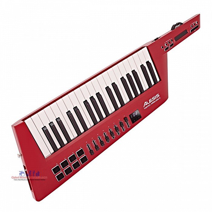 The Vortex Wireless 2 USB/MIDI Keytar Controller from Alesis is a wireless 37-key, velocity-sensitive, portable keyboard controller designed to be worn like a guitar but played like a keyboard. It is battery-powered for use with USB MIDI on Mac or Windows computers, MIDI modules, and hardware synths for live stage, studio, and rehearsal applications.