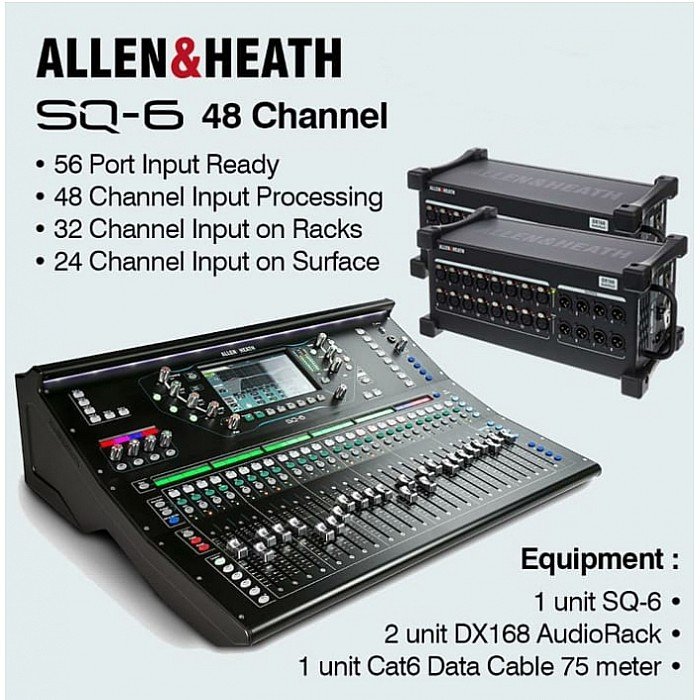 Based on Allen & Heath's acclaimed XCVI 96kHz FPGA audio engine, the SQ-6 digital mixer delivers extensive live sound mixing capabilities. Even with its powerful processing, the SQ-6 delivers best-in-class audio quality with less than 0.7ms of latency. You'll have a lot of flexibility when it comes to creating monitor mixes, with up to 12 stereo mixes (groups or auxes) in addition to the main LR out. Eight stereo FX engines provide studio-quality effects, with dedicated returns. Complete with a 32 x 32 USB audio interface, and dedicated controls for mixing convenience, the Allen & Heath SQ-6 is a smart mixing solution for live music, worship sound, and educational facilities.