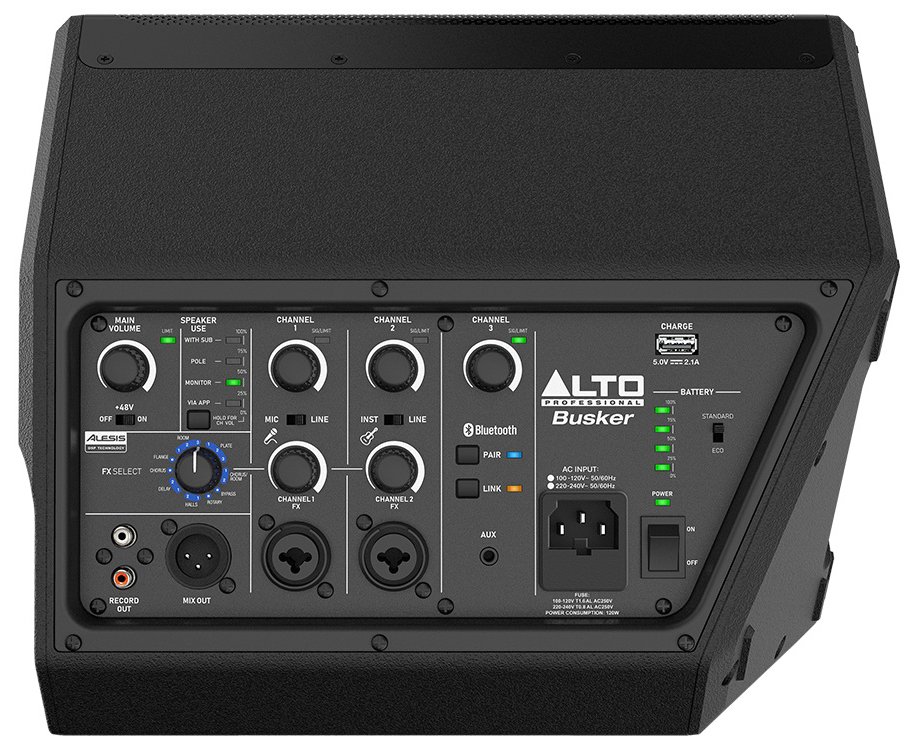 The Busker portable battery-powered PA Speaker provides a three-channel mixer for balancing levels and sweetening sound in record time! Two mic/instrument combo jacks let you independently connect your favorite gear and adjust levels. Users can flavor instruments and mics with onboard effects, including chorus, reverb (hall/room/plate), delay, and flanger. Effects are per channel and offer independent control over each effect’s intensity and level. The Busker PA’s third channel handles Bluetooth or wired auxiliary playback, which is perfect for practice sessions, break music, and backing tracks. And this savvy speaker is hardly limited to street-side use. XLR and RCA outputs can route signals to other systems or recording devices — use these outputs for recording live sets, turning the Busker into a stage monitor, or something else.