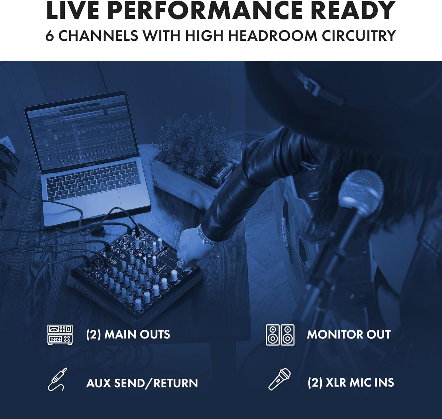 The Alto Professional TrueMix 600 6-channel analog mixer delivers simple and effective audio mixing to your workspace at a stealthy size. Given its USB I/O interface, six input options, and dual 48V phantom power line inputs, you’ll enjoy versatile and simplistic mix control among a wealth of instruments, vocals, and more. Each of the six channels is loaded with a 2-band EQ, gain, and panning control. Additionally, Main, Tape, Headphone, and Aux outputs are available to facilitate your volume based on your specific gear. What makes this mixer so special? Its dedicated Bluetooth channel, which provides feedback-free phone pairing for limitless multi-device possibilities. Found yourself at a darker venue? No worries: the 8-segment LED meter onboard the TrueMix 600 will ensure you’ve still got a gauge on your audio. Topped off with a portable construction, it’s no wonder so many audio professionals choose to keep a TrueMix 600 in their go bag.