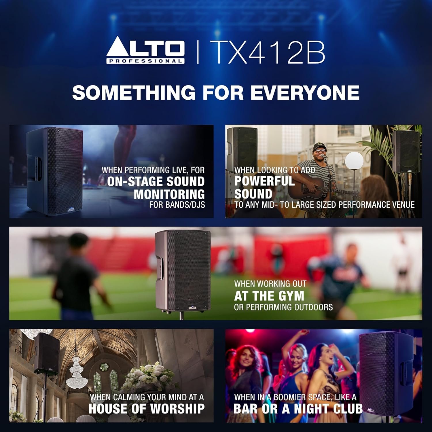 Thanks to an entirely metal grille and sturdy enclosure, you can be sure that these speakers and subwoofers can handle whatever unexpected twists and turns that may lie ahead. As if that weren’t enough, users can expect all of this durability with the added bonus of tremendous portability. Not only are these units equipped with ergonomic handles, but they are conveniently lightweight, making setup and transport easier than ever.  We’re impressed with the generous I/O on the TX412B, which includes an XLR combo line input and a balanced XLR line output. The TX412B is truly roadworthy, boasting a rugged full-metal grille, a top carry handle for easy transport, and standard speaker pole socket and monitor angle configurations. When you need an easy-to-deploy PA speaker that’s built to last, the Alto Professional TX412B stands ready to deliver the goods.