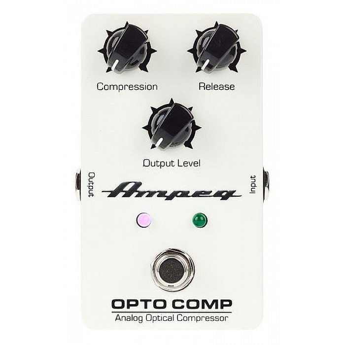 The Ampeg Opto Comp Analog Optical Compressor pedal utilizes an optical circuit to deliver smooth, vintage style compression to add headroom and sustain to your guitar or bass. Dial in a fast, subtle style to control peaks or crank up the compression to add a unique character. Bring your tone to new heights with the Opto Comp Analog Optical Compressor. Brings your tone to new heights!