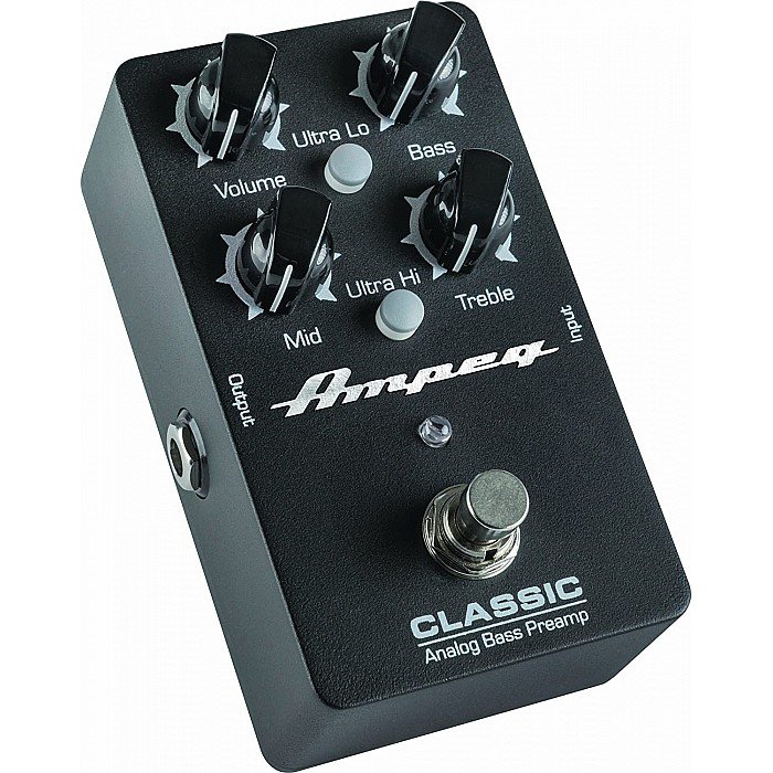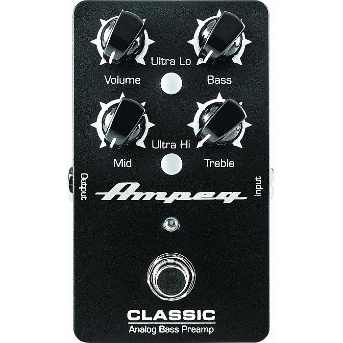 Put the powerful, driving sound of Ampeg amplifiers on your pedalboard, with the Ampeg Classic analog bass preamp pedal. Use the 3-band tone stack to explore a wide range of bass tones for any genre. Add extra high-end definition or low-end weight with the Ultra-Hi and Ultra-Low circuits. This all-analog bass pedal features true bypass switching and an amazingly rugged all-metal chassis for maximum reliability.