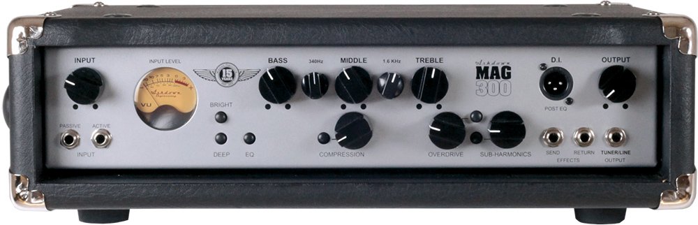 The MAG 300H head features a potent new fan-cooled 307 watts RMS power section. Rotary bass, middle and treble controls are supplemented by smaller rotary controls providing 15dB of cut and boost at 220Hz and 1.6kHz, providing a comprehensive 5 band EQ section. Additionally, front panel push switches for Bright and Deep settings provide instant access to attacking and warm, rounded sounds respectively and, on the subject of low-end response, the trademark Ashdown sub-harmonic generator is ready and able to deliver truck loads of earth moving tone if called upon. Inputs are provided for active and passive instruments and the front panel also features an effects send and return, a tuner/line output and a balanced DI output for direct connection to a mixing console.