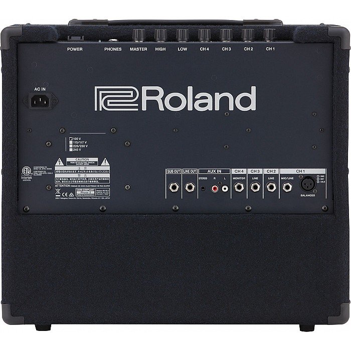 The Roland KC-200 4-channel keyboard amplifier is an outstanding solution for amplifying your keyboard and synthesizers, complete with onboard mixing and full-range sound. In fact, it's also a well-equipped portable PA with an auxiliary input for external audio and an XLR microphone input for vocals. With a 12" woofer and a separate tweeter driven by 100 watts of power, the KC-200 is ready for practice sessions and gigs.