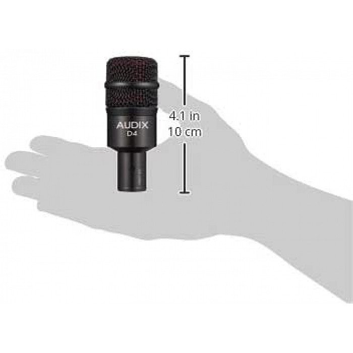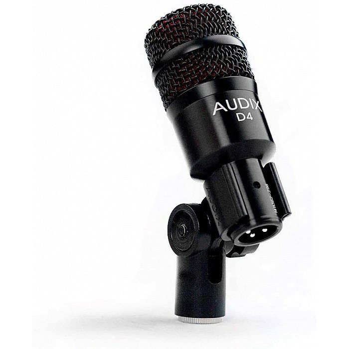 The Audix D4 drum microphone offers both the frequency and sensitivity response useful for accurately recording drums and percussion instruments. The D4 features a dynamic element capable of reproducing signals with high transients peaks without producing the noise associated with distortion and overloading the capsule.