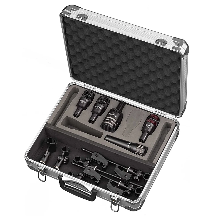 The DP7 represents the latest collection of drum kit microphones from Audix, a manufacturer that has built its stellar reputation around crafting application-specific microphones. Included in the DP7 drum mic package is the D6, Audix's flagship kick drum mic, D2 and D4 mics for the toms, an i5, which proves useful on snare drums (as well as guitar cabinets), and a pair of ADX51s for overhead miking. A road case keeps everything safe when traveling. Everything you need for great drum sounds live or in the studio is included in the DP7!