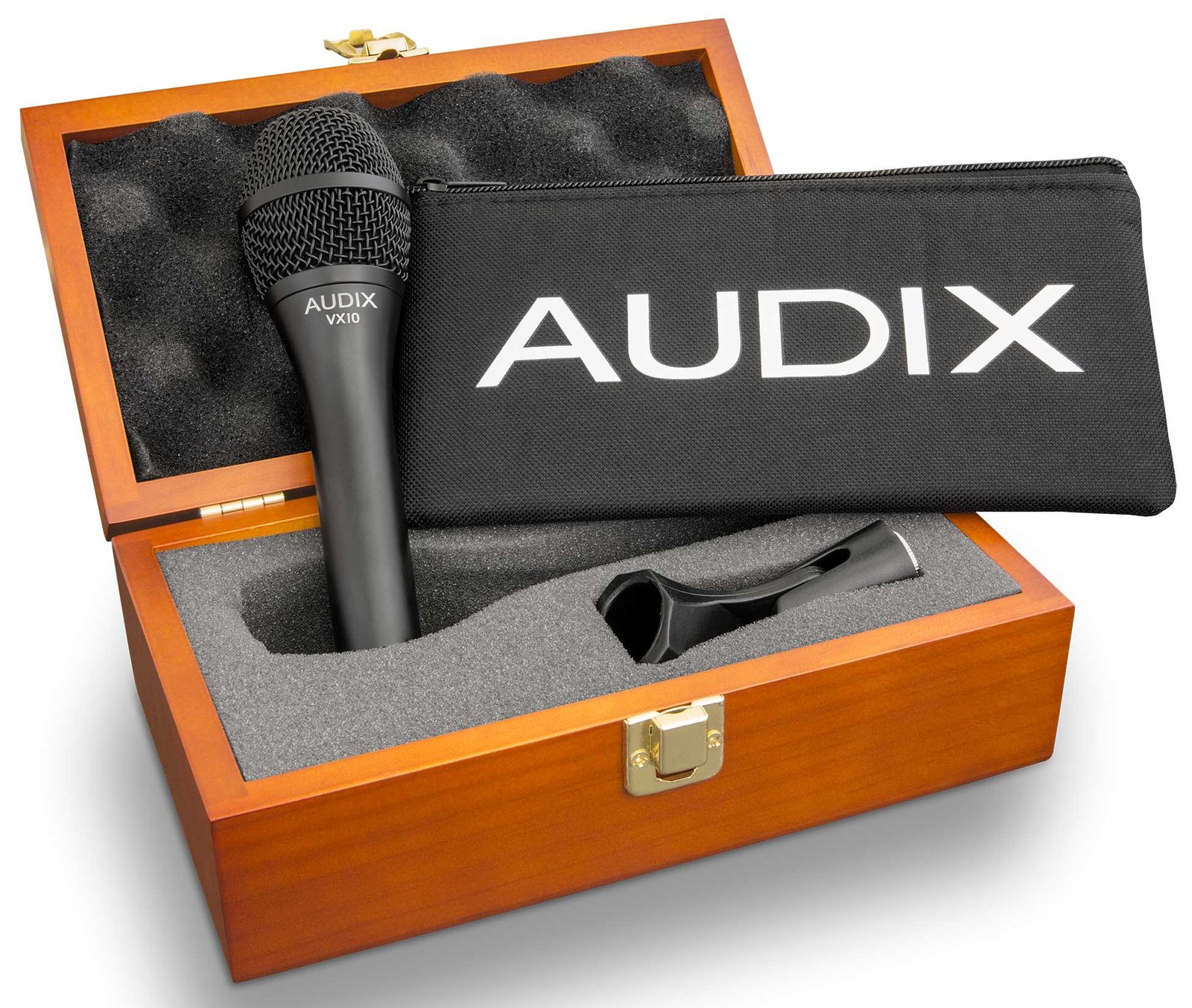 The Audix VX-10 is a professional handheld condenser microphone designed for stage performances and broadcast applications. The wide frequency response of 40Hz to 20kHz enables the microphone to accurately reproduce signals with great detail. The result is the clarity necessary for professional performances without unwanted low frequency noise.