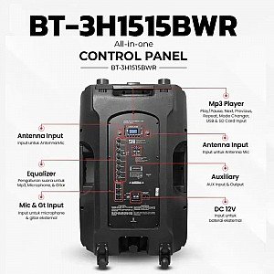 BARETONE PORTABLE SPEAKER 15 INCH BT-3H1515BWR TWS BLUETOOTH