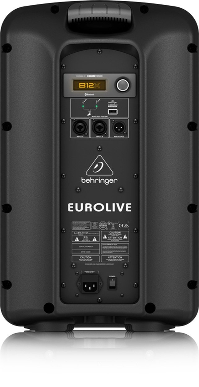 The Behringer B12X Active PA Speaker is the latest addition to Behringer's active speaker range, featuring a powerful class-D amplifier and an integrated 3-channel digital mixer. The onboard mixer is equipped with Bluetooth connectivity for wireless audio streaming, as well as KLARK TEKNIK digital signal processing and DSP presets which allow you to optimise the B12X's performance to suit any application. By combining 12'' long-excursion woofer with a state-of-the-art 1'' phenolic-diaphragm, the Behringer B12X active speaker accurately reproduces audio while delivering deep bass responses and crystal-clear mids/highs. The Behringer B12X has a versatile trapezoidal enclosure which can be positioned horizontally or vertically, or mounted on to speaker stands.