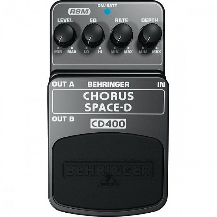 Now you can have it all, thanks to the Behringer Chorus Space-D CD400 pedal' built-in EQ. The CD400 features all the standard Depth, Rate and Level dials you would expect, plus a dedicated EQ control that gives you total control over your chorus™ treble content. Soft and supple, or sharp as a razor' edge”your thumb and forefinger have never had it so good!