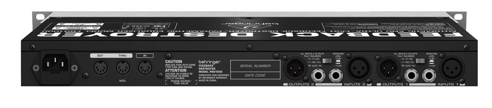 With the Behringer FBQ1000 Feedback Destroyer 's various modes, you can ace just about any live sound challenge - or use the FBQ1000 as a creative sound-shapinger. A single FBQ1000 can protect you from feedback in both your mono PA mains as well as your monitor mix. In the fight against feedback, the FBQ1000 Behringer Feedback Destroyer is your knight in shining armor.