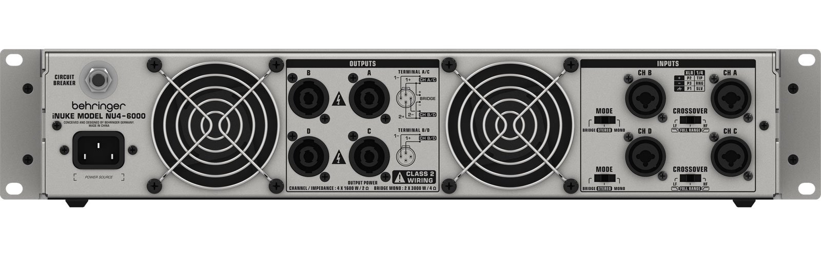 Behringer iNuke NU4-6000 4-channel Power Amplifier Features: