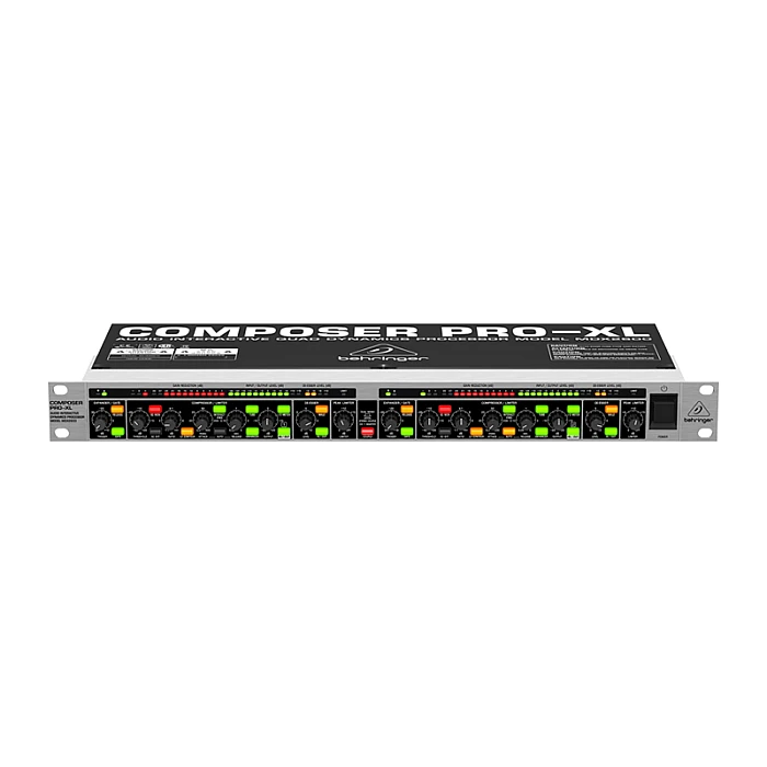 The Behringer MDX2600 Composer Pro-XL Compressor is surprisingly easy to use. It has all the basic tools for optimal sound onstage and in the studio plus integrated dynamic enhancer, de-esser, tube simulation, and low-contour filter. Revolutionary IKA circuitry combines the advantages of hard- and soft-knee compression in a single dynamic function to deliver natural, transparent results. Also equipped with fully automatic and manually adjustable attack and release times, IGC peak-limiting circuit, selectable dual-mono or stereo, 12-segment display, switchable sidechain input with sidechain monitor function, and servo-balanced XLR and 1/4" I/O. Single rackspace.