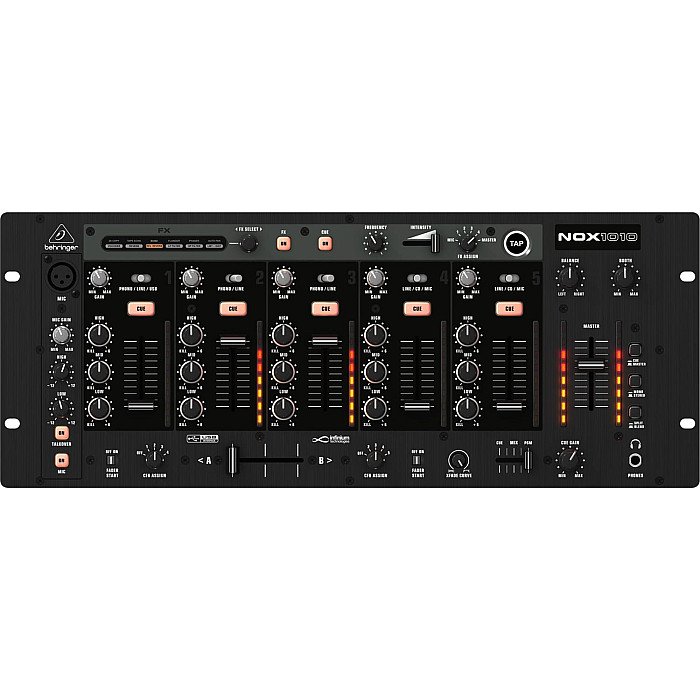 You can connect up to five stereo sound sources to the Behringer Pro Mixer NOX1010 DJ mixer - turntables, mp3 players, synthesizers, drum machines, or anything else you like. Musicians know that modern DJs need more tools than just a couple inputs and a crossfader. The Pro Mixer NOX1010 DJ mixer packs built-in digital effects, sweet 3-band EQs with kill filters, and a USB audio interface for easy access to your computer's music library and plug-in instruments. With impressive functionality, there's a lot of value in the Behringer Pro Mixer NOX1010 DJ mixer.