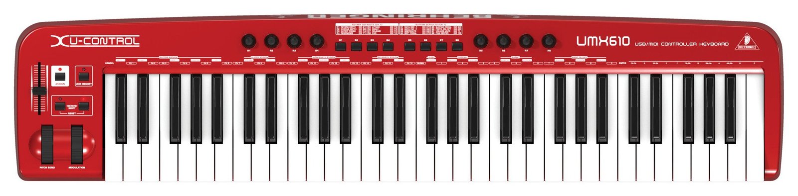 The Behringer U-Control UMX610 is a flexible USB/MIDI controller. Control virtual instruments, synths, and effects in real time with the velocity sensitive 61 full-size keys via the USB connection. You can also control external synths, sound modules and sampler via the MIDI output.
