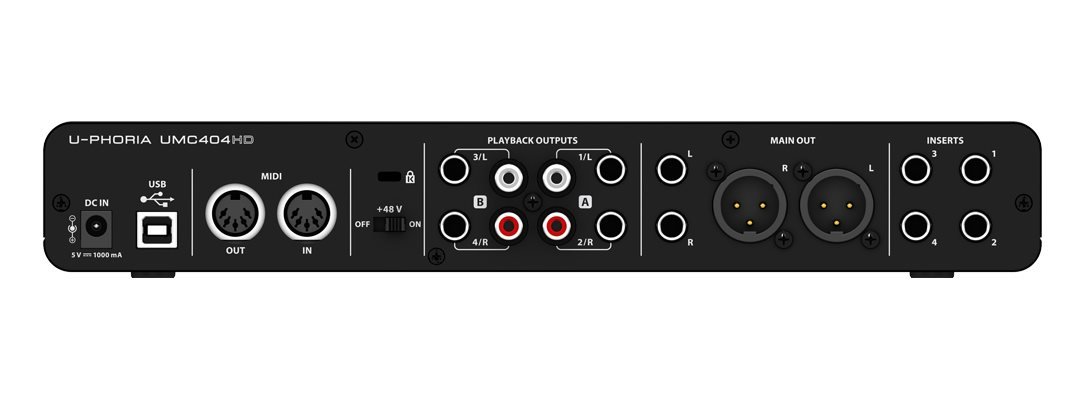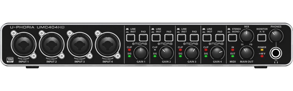 One of the things that really makes the Behringer U-Phoria UMC404HD USB 2.0 audio interface stand out is its genuine MIDAS preamplifier technology. Known throughout the world of live sound for delivering ultra clear sound with plenty of headroom, MIDAS preamps are among the most popular mic pres on Earth. What's more, these preamps come standard with +48V phantom power onboard, so you can use your choice of quality condenser microphones with your U-Phoria UMC404HD.