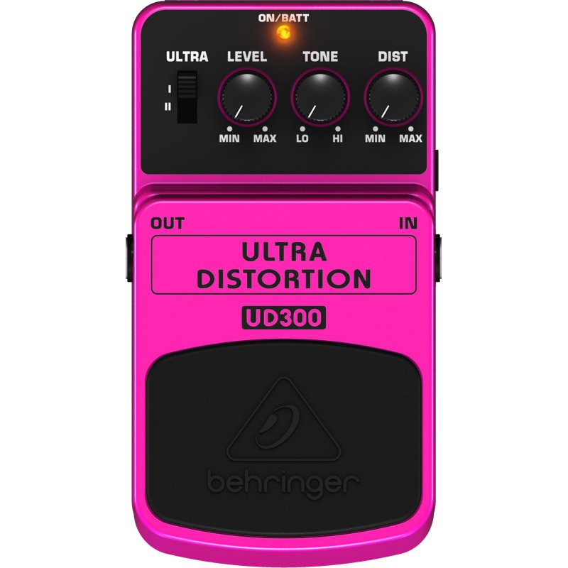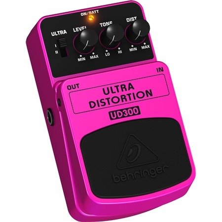 The Behringer Ultra Distortion UD300's two-mode switch lets you choose between warm, rhythm-ready overdrive and volcanic, screaming distortion that will send your leads into the stratosphere. Just twist the dedicated Level, Tone and Distortion dials to create a tasty new flavor of distortion that's distinctively yours. The status LED tells you when the UD300 is activated, and the superior on-off switch maintains excellent signal integrity in bypass mode.