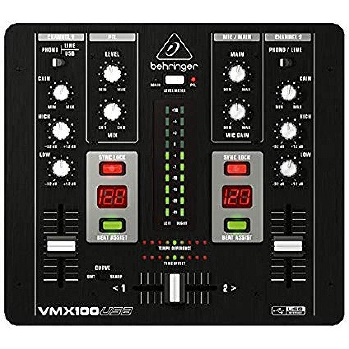Need a compact, straightforward DJ mixer? The Behringer Pro Mixer VMX100USB will give you the performance you need plus handy features you really want. This compact VMX mixer comes equipped with Behringer's intelligent BPM counter with Tempo Difference and Time Offset displays, and its Sync Lock and Beat Assist functions let you mix with confidence.