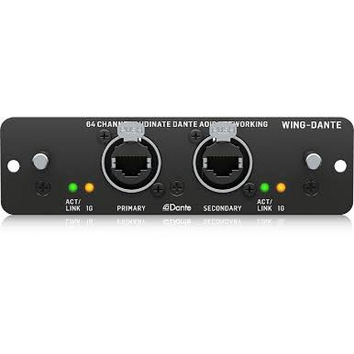 With the WING-DANTE 64-channel expansion card from Sweetwater, you can harness the power of the Behringer WING merged with high-speed Dante networking! The Behringer WING-DANTE expansion card is a drop-in replacement for the WING’s stock WING-LIVE card that allows you to interface with Dante networks using either standard 100Mbit/s or Gigabit Network infrastructure with DSCP-based QoS. The WING-DANTE supports mixed sample rates and bit-depth that coexist on a shared network. This expansion card offers 24-bit signal transmission, low-latency performance, and sample-accurate synchronization for pristine audio quality, and it includes a secondary input for establishing a redundant network. Furthermore, you can connect the WING-DANTE card to your computer and take advantage of Audinate's Dante Controller software for remote signal routing of it and your other Dante-enabled devices.