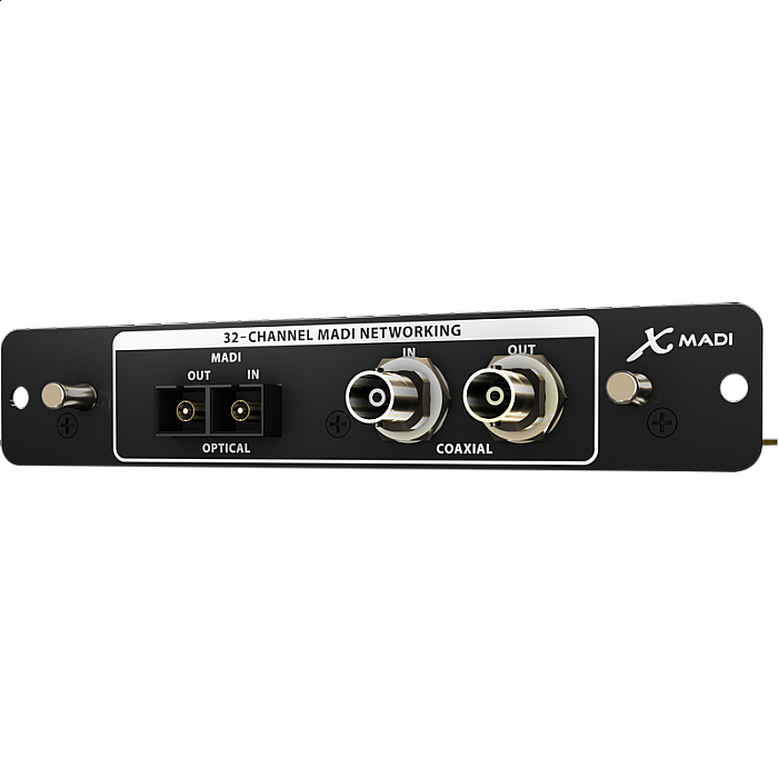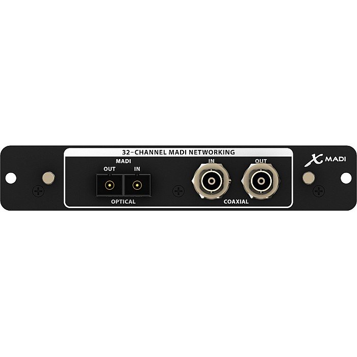 The Behringer X-MADI expansion card will bring serious functionality to your Behringer X32 digital mixing console by adding 32 channels of bi-directional MADI connectivity via BNC or optical connections. We knows that the MADI protocol is quickly becoming the industry standard in broadcast applications, so the X-MADI is perfect for integrating your X32 into existing MADI installations. And since it supports both the 56-channel and 64-channel MADI streams for maximum compatibility, you'll appreciate the extra connectivity and flexibility the Behringer X-MADI expansion card gives your X32 console.
