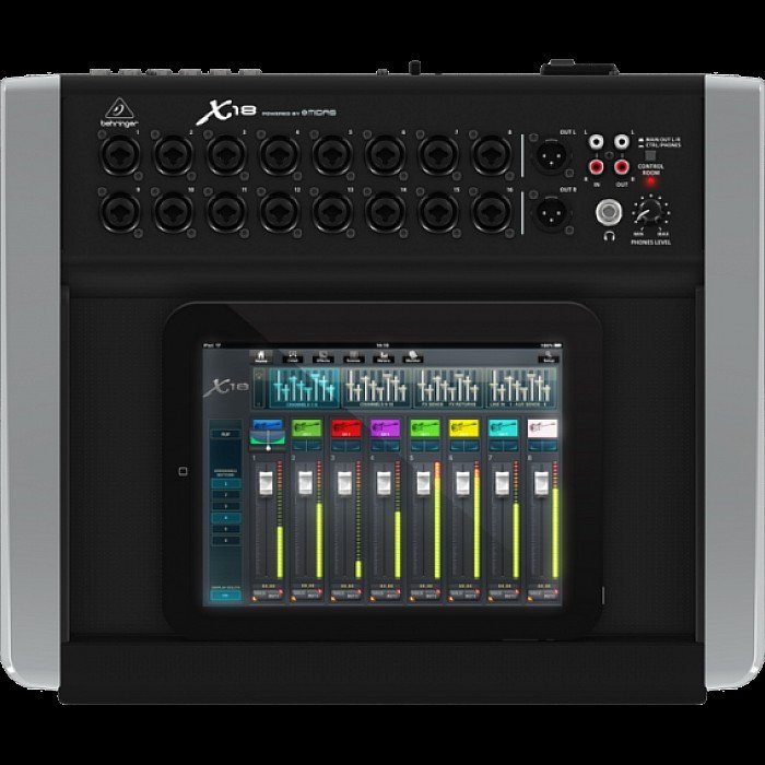 Behringer's cutting-edge X Air digital mixers integrate with your iPad or Android tablet — and even your smartphone — for unprecedented mixing power and mobility. Plug in your mic and line level sources and mix from anywhere in the venue or studio via the free remote control app. The X18 is an 18-input desktop unit with 16 gain-programmable Midas-designed microphone preamps, Behringer's renowned X32 effects rack, a 100-band Real Time Analyzer on all channels and bus EQs, an 18 x 18 USB interface, integrated Wi-Fi, a convenient tray for your tablet or small laptop, and more. Just add mics, and you have everything you need to mix a live show and record pristine multitrack studio sessions straight to your DAW. The Behringer X18 gives you a whole new way to mix.