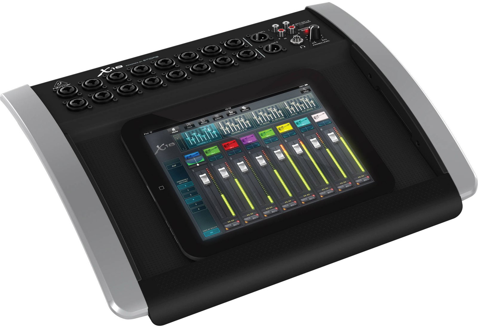 Behringer's cutting-edge X Air digital mixers integrate with your iPad or Android tablet — and even your smartphone — for unprecedented mixing power and mobility. Plug in your mic and line level sources and mix from anywhere in the venue or studio via the free remote control app. The X18 is an 18-input desktop unit with 16 gain-programmable Midas-designed microphone preamps, Behringer's renowned X32 effects rack, a 100-band Real Time Analyzer on all channels and bus EQs, an 18 x 18 USB interface, integrated Wi-Fi, a convenient tray for your tablet or small laptop, and more. Just add mics, and you have everything you need to mix a live show and record pristine multitrack studio sessions straight to your DAW. The Behringer X18 gives you a whole new way to mix.