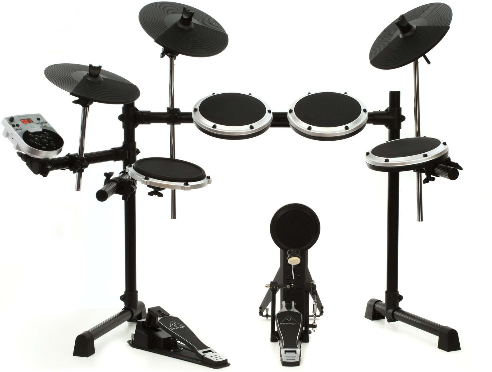 Behringer's XD8USB electronic drum set gets you pounding out great-sounding grooves, right out of the box. Super easy to set up, the XD8USB comes complete with rack, hardware, and the great sound of the HDS110USB. You'll be more expressive than ever with dual-zone pads, 12" cymbals, a hi-hat trigger pedal, and a complete kick drum setup that includes the pedal, pad, and stand. We urges you to unleash your inner rhythm beast - with 15 drum sets and 123 sounds, Behringer's XD8USB electronic drum set is an affordable step into the world of electronic drums.