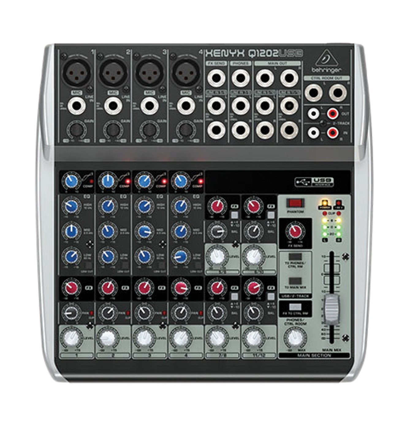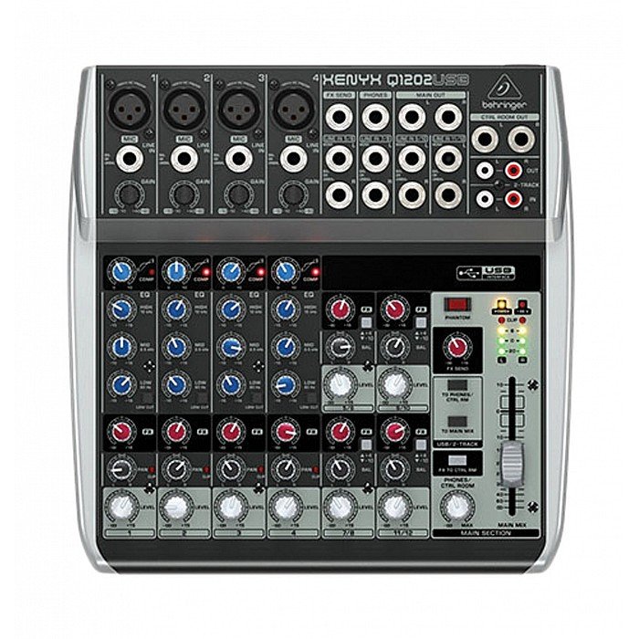 The Behringer XENYX Q1202USB mixer is made to handle live gigs, and provide you with the required tools necessary to capture professional-quality recordings. Along with its built-in USB/audio interface, and “one-knob” mono channel compressor, the XENYX Q1202USB mixer comes with enough recording and editing software to turn your computer into a complete recording studio. The largest of the XENYX Q Series, The XENYX Q1202USB is built for versatility and tone, and is equally at home at your live gig or in the studio. This compact mixer provides 4 mono channels with phantom-powered XENYX mic preamps, neo-classic 3-band British-style EQ, plus 4 stereo channels.
