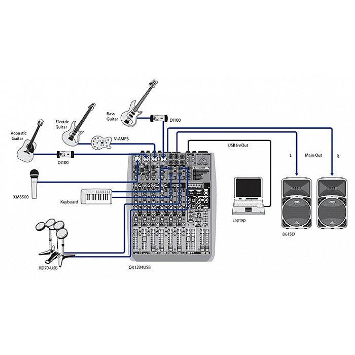 The compact Q1204USB mixer allows you to effortlessly achieve premium- quality sound, thanks to its 4 onboard studio-grade XENYX Mic Preamps and ultra-musical “British” channel EQs. And Behringer's easy-to-use “one-knob” compressors provide total dynamic control for the ultimate in punch and clarity, while respecting all the power and emotion you pack into every note. Add to this, the sweet forgiveness of the British-style EQs and “Wireless-ready” performance of our high-quality ULM digital Wireless Microphone System (mic not included) – and the Q1204USB becomes an incredibly versatile mixer for your live performances.
