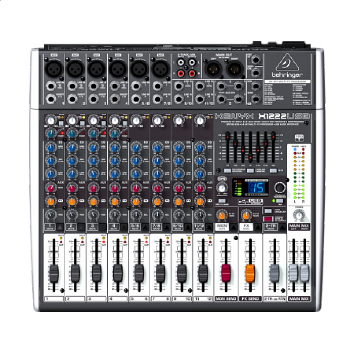 The QX1222USB comes equipped with channel Inserts for inputs 1 – 4 for use with outboard FX, a stereo 7-band graphic EQ, which can be assigned to the main or monitor buses and our proprietary FBQ Feedback Detection System. Other features include full-sized faders for Monitor and FX Sends, our XPQ 3D stereo surround effect (creates a broader, enhanced stereo image), and a handy Voice Canceller function for removing vocals from pre-recorded media for “instant-karaoke” applications.