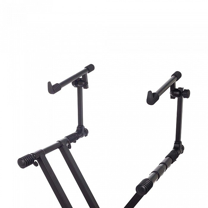 Intended for use with Bespeco KS12 and KS22 keyboard stands, the AG12 provides an additional tier, allowing you to mount a second keyboard onto either of the aforementioned stands. It features a steel construction with nylon pieces to keep your keyboard from slipping, and offers an adjustable tilt to better angle your keyboard. The AG12 supports up to 44 lb and mounts to the KS12 or KS22 with ease: simply slip off the stand's rear nylon grips and screw the AG12 in place.
